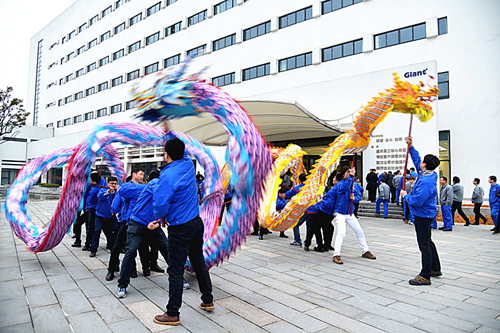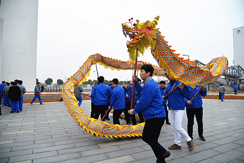 早上7點鐘,工業園內,由公司青年員工組成的舞龍隊早早等候在廠區門口,精心準備為公司全體同事獻上一出惟妙惟肖的表演,慶賀雞年開工大吉大利,喜迎同事們快樂重返工作崗位。