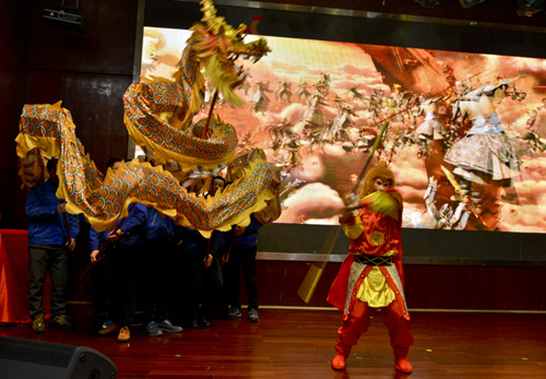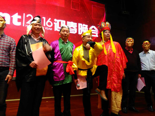 晚會在歡快熱烈的氣氛中進行。開場歌舞秀《金猴鬧龍宮》成為第一個高潮,公司高層扮演師徒四人取經并演唱《敢問路在何方》,讓全場爆笑不已、掌聲連連。