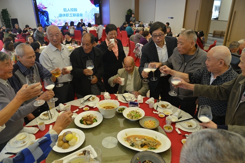 120多名巨人退休職工興高采烈地來(lái)到曾經(jīng)為之奮斗的故地——由巨人老廠房改建的巨人君瀾度假酒店,不禁感慨萬(wàn)千。今天參加聯(lián)誼會(huì)的退休員工年齡最長(zhǎng)的已是91歲高齡。老人們共同回憶往昔歲月,感恩時(shí)代機(jī)遇給公司帶來(lái)的滄桑巨變,給退休職工帶來(lái)的美好生活。在故地廣場(chǎng)上的合影留念,將這歡聚一刻定格成永恒的畫(huà)面。