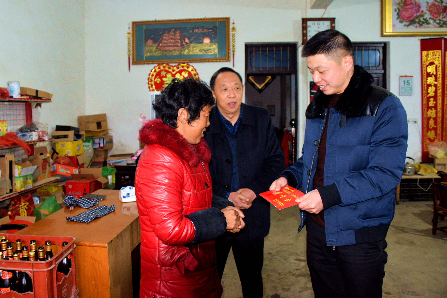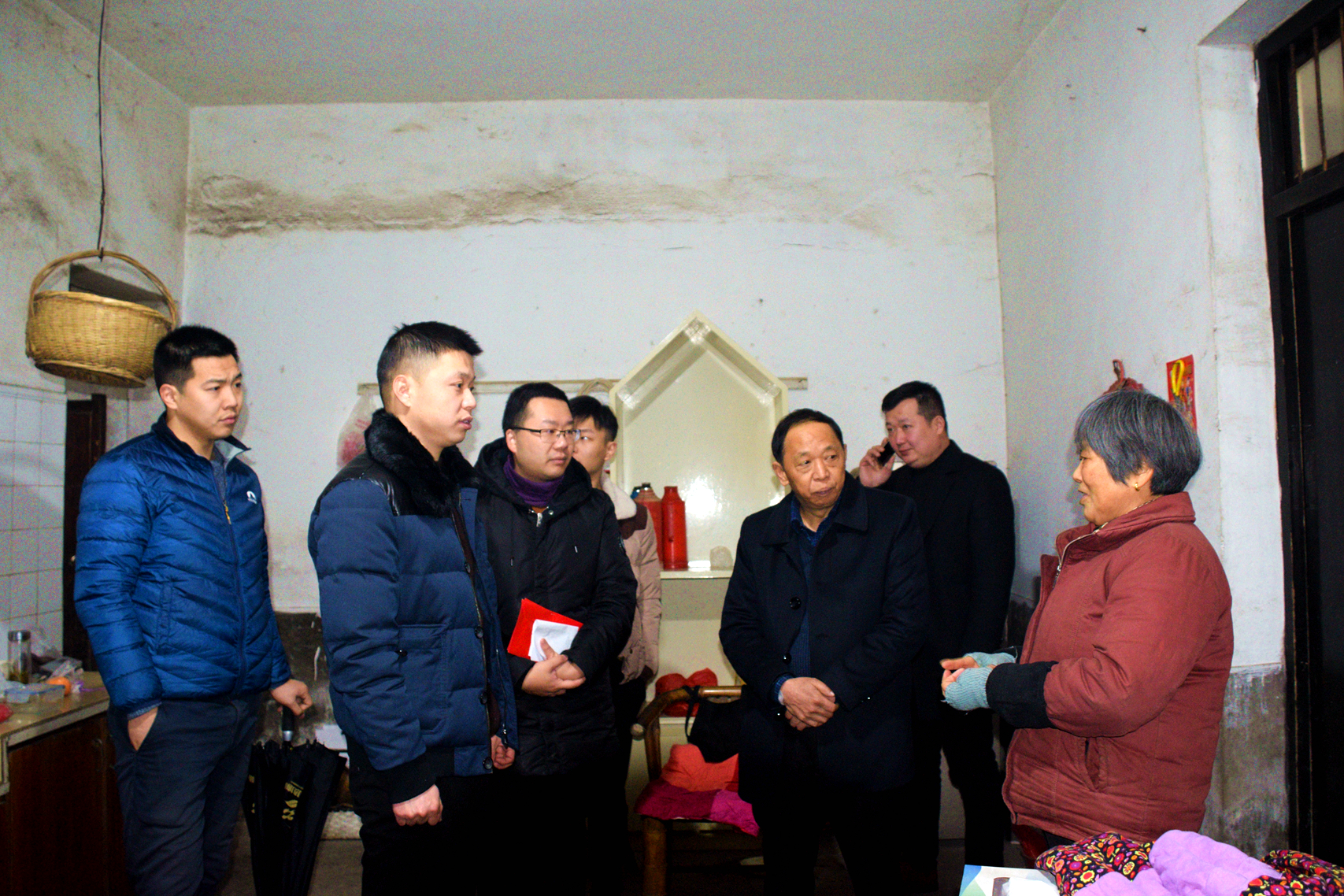 區(qū)慈善總會會長華新民等相關(guān)領(lǐng)導和巨人控股員工代表邱鳴歡、徐謝翔在患者家庭慰問