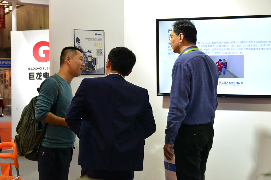 巨人集團旗下企業在展會上全新推出一款民用產品——樓梯代步機,可為不符合加裝電梯條件的老樓提供最為便捷的出行方案,解決老年朋友上下樓梯困難。該產品的應用演示在展會上受到格外關注,商洽客戶絡繹不絕。